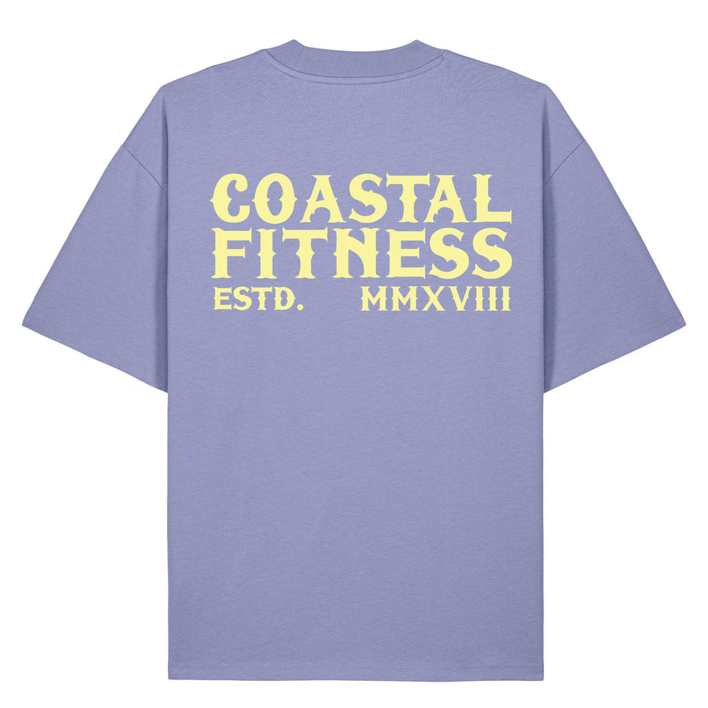 This Oversized Tee in the colour Violet features the CFGY Logo centred on the back and a smaller logo coastal fitness on the left breast.